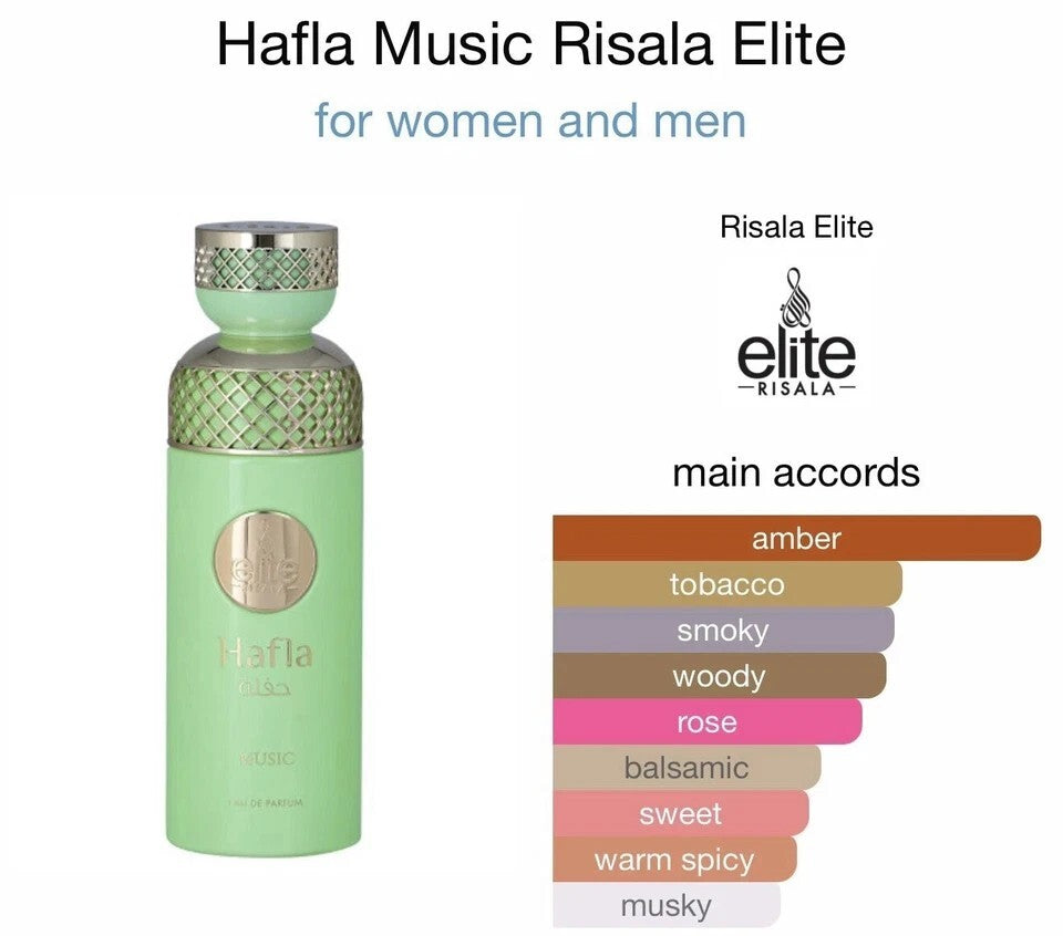 is a Oriental Woody fragrance for women and men. This is a new fragrance. Hafla Music was launched in 2024.