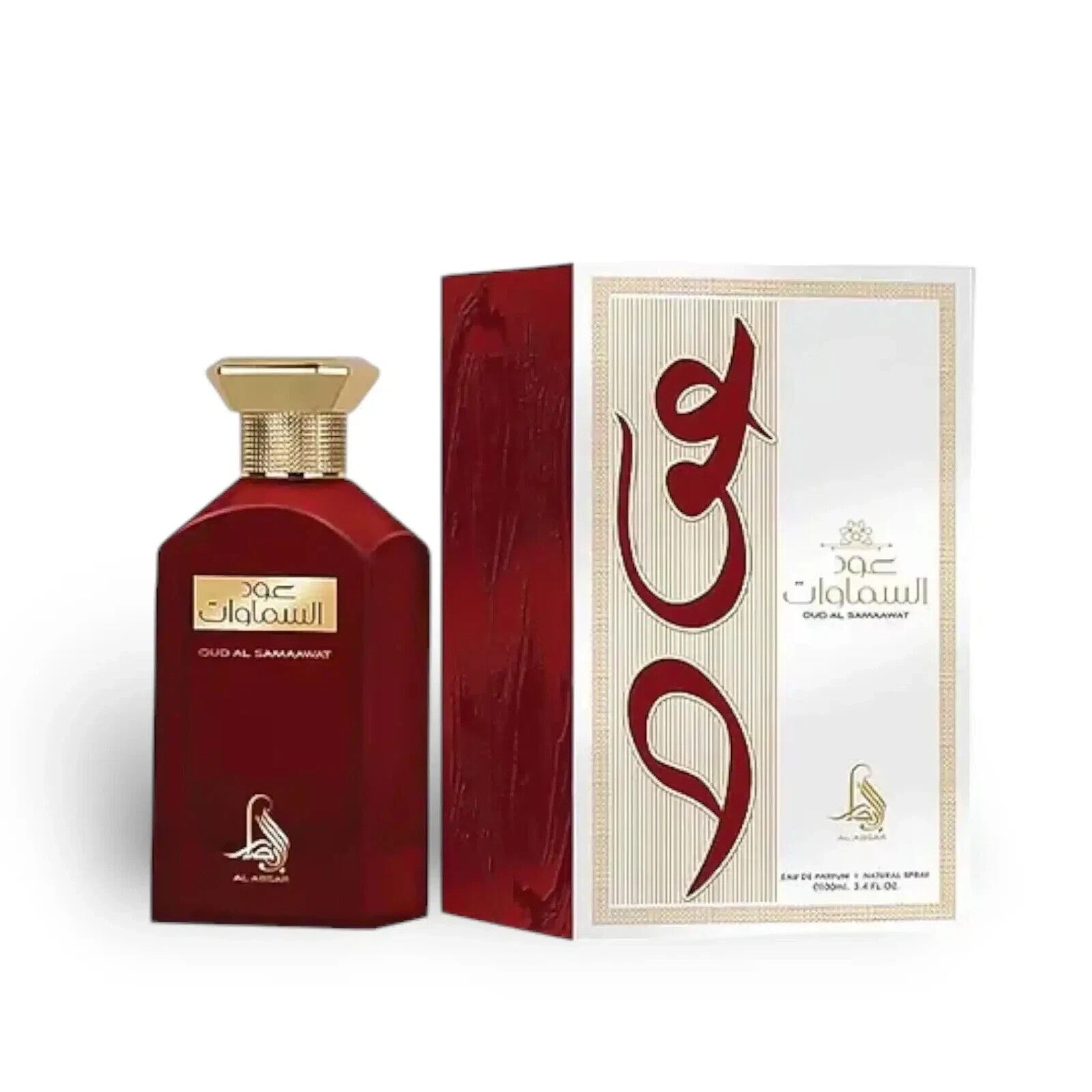 Experience the luxurious allure of Oud Al Samaawat Eau de Parfum 100ml by Al Absar, a unisex fragrance that masterfully combines the richness of oud with the sensuality of fruity and floral notes. Inspired by the elegance of Lost Cherry and the depth of Oud for Greatness, this sophisticated scent is a harmonious blend of sweet, spicy, and woody layers.