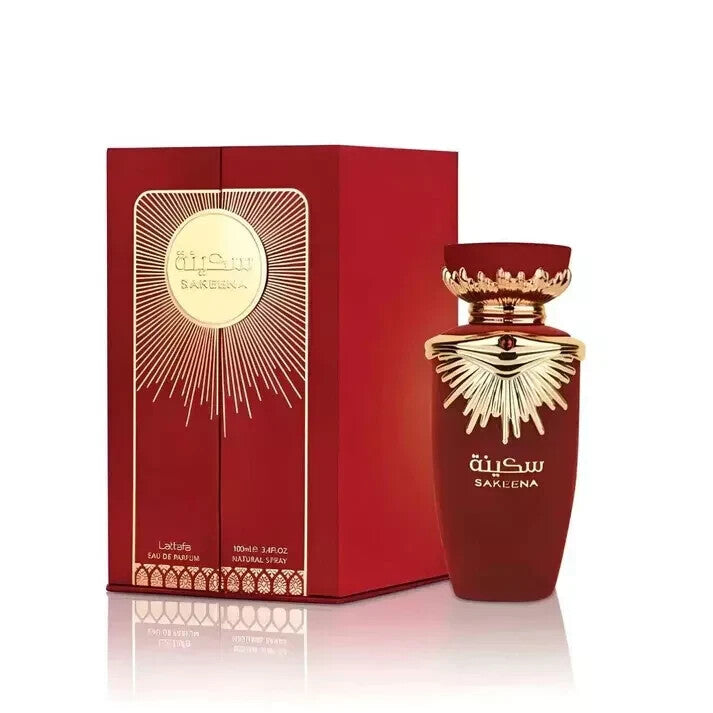Sakeena Eau De Parfum is a captivating fragrance from Lattafa, elegantly presented in a 100ml bottle.